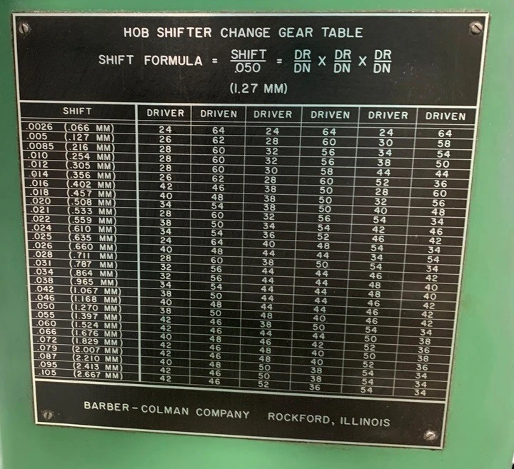 No.16-16, Barber-Colman, Sgl. Thread Index Worm, Hob Shift, Rapid Traverse, Dwell
