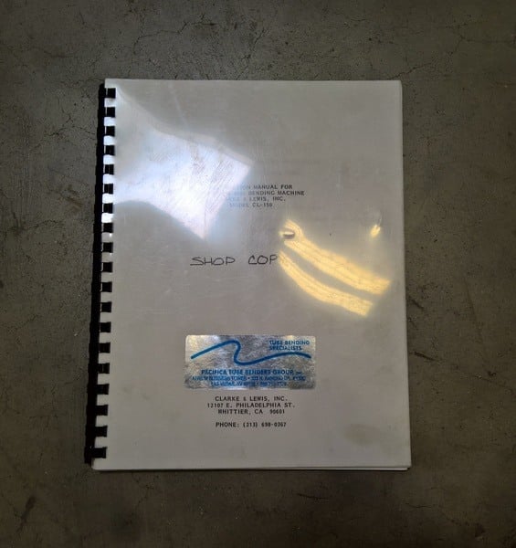 Manual Tube Bender Clarke & Lewis CL-150M EQUIPPED WITH: