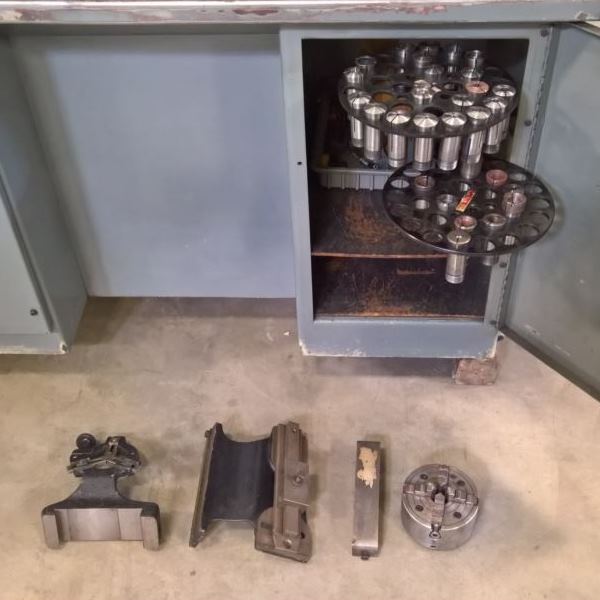 Assorted Collets, 6″ 4-Jaw Chuck, Cut-Off Slide, Tool Posts