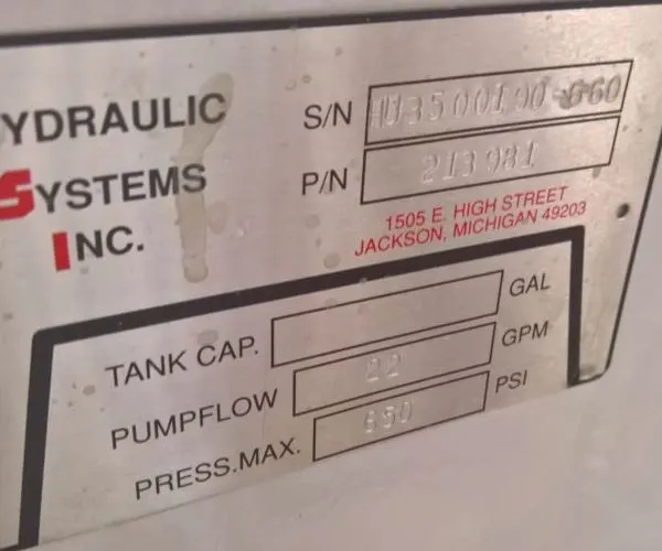 Hydraulic Systems, P/N 213981, 22 GPM, 650 PSI, Dual Pump, Rosedale Filter, 2010