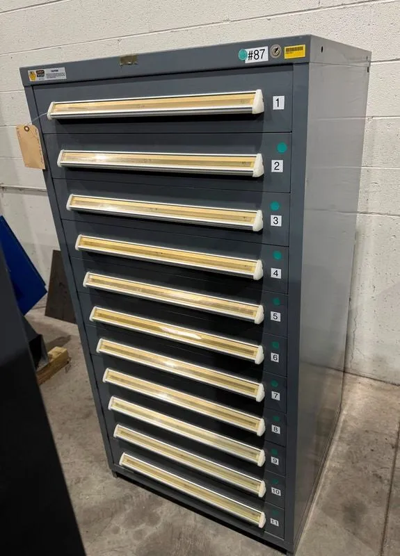 Stanley Vidmar SEP3062AL, (11) Drawers, 29″L x 30″W x 59″H, Forktruck Base, Lock