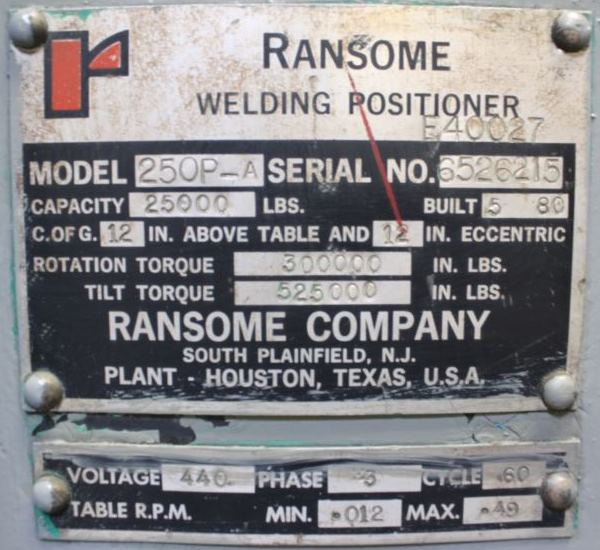 25000 lb. Ransome 250P-A Tilt Turn Welding Positioner – #45019