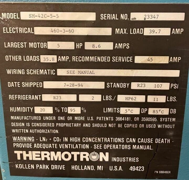 44″W x 37″D x 44″H Thermotron SM-42-5-5, Temp & Humidity, -68C to 180C(2)