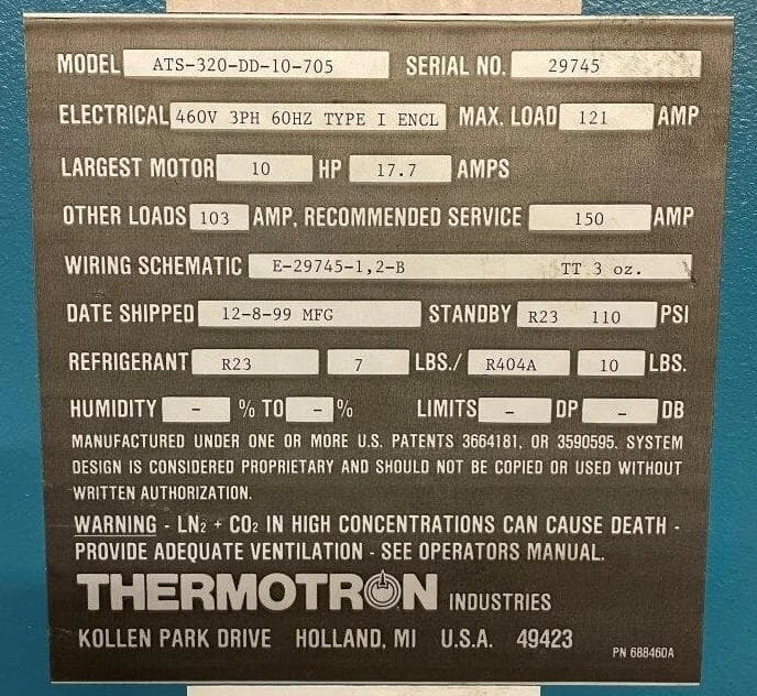 25″W x 15″D x 15″H Thermotron ATS-320-DD-10-705, Hot to 200C, Cold to -73C(2)