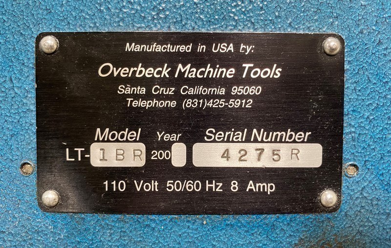 Twister Speed Lathe Overbeck TL1B EQUIPPED WITH: